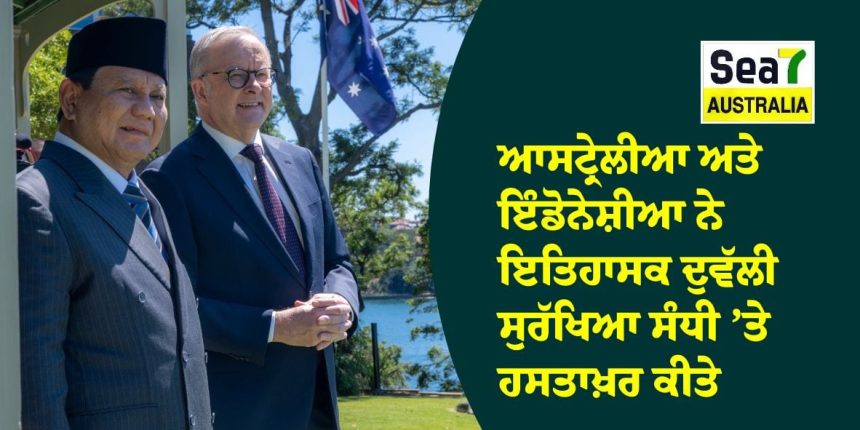 ਮੈਲਬਰਨ : ਆਸਟ੍ਰੇਲੀਆ ਅਤੇ ਇੰਡੋਨੇਸ਼ੀਆ ਇੱਕ ਇਤਿਹਾਸਕ ਦੁਵੱਲੀ ਸੁਰੱਖਿਆ ਸੰਧੀ ’ਤੇ ਸਹਿਮਤ ਹੋਏ ਹਨ, ਜਿਸ ਦੀ ਪ੍ਰਧਾਨ ਮੰਤਰੀ Anthony Albanese ਨੇ ਇੱਕ “watershed moment” ਵਜੋਂ ਸ਼ਲਾਘਾ ਕੀਤੀ ਹੈ। ਇਹ ਸਮਝੌਤਾ ਦੋਵਾਂ ਦੇਸ਼ਾਂ ਨੂੰ ਲੀਡਰ ਅਤੇ ਮੰਤਰੀ ਪੱਧਰ ’ਤੇ ਨਿਯਮਤ ਸਲਾਹ-ਮਸ਼ਵਰੇ ਕਰਨ, ਧਮਕੀਆਂ ਦੇ ਸਾਂਝੇ ਜਵਾਬ ਅਤੇ ਆਪਸੀ ਲਾਭਦਾਇਕ ਸੁਰੱਖਿਆ ਗਤੀਵਿਧੀਆਂ ਲਈ ਵਚਨਬੱਧ ਕਰਦਾ ਹੈ। ਇਹ ਪਿਛਲੇ ਸਾਲ ਦੇ ਰੱਖਿਆ ਸਹਿਯੋਗ ਸਮਝੌਤੇ ‘ਤੇ ਅਧਾਰਿਤ ਹੈ ਅਤੇ ਪਾਪੂਆ ਨਿਊ ਗਿਨੀ ਨਾਲ ਆਸਟ੍ਰੇਲੀਆ ਦੀ ਹਾਲ ਹੀ ਵਿੱਚ ਹੋਈ ਰੱਖਿਆ ਸੰਧੀ ਦੀ ਪਾਲਣਾ ਕਰਦਾ ਹੈ। ਰਾਸ਼ਟਰਪਤੀ ਪ੍ਰਬੋਵੋ ਸੁਬਿਆਂਤੋ ਨੇ ਇਸ ਨੂੰ ‘ਚੰਗੀ ਗੁਆਂਢੀ ਨੀਤੀ’ ਵਜੋਂ ਤਿਆਰ ਕੀਤਾ, ਜਿਸ ਵਿੱਚ ਆਪਸੀ ਸਹਾਇਤਾ ਦੀਆਂ ਸਭਿਆਚਾਰਕ ਕਦਰਾਂ-ਕੀਮਤਾਂ ’ਤੇ ਜ਼ੋਰ ਦਿੱਤਾ ਗਿਆ। ਰਸਮੀ ਤੌਰ ’ਤੇ ਨਵੇਂ ਸਾਲ ’ਚ ਦਸਤਖਤ ਹੋਣ ਵਾਲੀ ਇਹ ਸੰਧੀ ਹਿੰਦ-ਪ੍ਰਸ਼ਾਂਤ ਸਹਿਯੋਗ ਅਤੇ ਖੇਤਰੀ ਸਥਿਰਤਾ ‘ਚ ਇਕ ਨਵੇਂ ਯੁੱਗ ਦੀ ਨਿਸ਼ਾਨਦੇਹੀ ਕਰਦੀ ਹੈ।