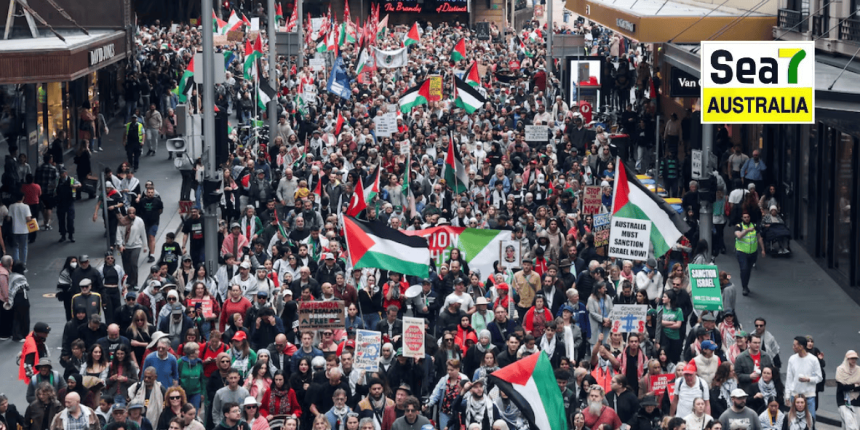 ਮੈਲਬਰਨ/ਸਿਡਨੀ: ਆਸਟ੍ਰੇਲੀਆ ਦੇ ਵੱਖ-ਵੱਖ ਸ਼ਹਿਰਾਂ ਵਿੱਚ ਐਤਵਾਰ ਨੂੰ ਲੱਖਾਂ ਲੋਕਾਂ ਨੇ ਫ਼ਲਸਤੀਨ ਦੇ ਸਮਰਥਨ ’ਚ ਮਾਰਚ ਕੀਤਾ। ਆਯੋਜਕਾਂ ਮੁਤਾਬਕ ਦੇਸ਼ ਭਰ ਵਿੱਚ ਲਗਭਗ ਤਿੰਨ ਲੱਖ ਲੋਕ ਸੜਕਾਂ ’ਤੇ ਉਤਰੇ, ਜਿਨ੍ਹਾਂ ਵਿੱਚੋਂ ਸਿਰਫ਼ ਮੈਲਬਰਨ ਵਿੱਚ ਲਗਭਗ ਇੱਕ ਲੱਖ ਲੋਕਾਂ ਨੇ ਹਿੱਸਾ ਲਿਆ।