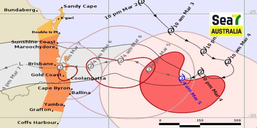 ਤੂਫਾਨ ਦੇ ਸਾਊਥ-ਈਸਟ ਕੁਈਨਜ਼ਲੈਂਡ ਤੱਟ ਅਤੇ ਨੌਰਥ-ਈਸਟ ਨਿਊ ਸਾਊਥ ਵੇਲਜ਼ ਦੇ ਕੁਝ ਹਿੱਸਿਆਂ ਨੂੰ ਪ੍ਰਭਾਵਿਤ ਕਰਨ ਦੀ ਸੰਭਾਵਨਾ ਹੈ। ਮੌਸਮ ਵਿਗਿਆਨ ਬਿਊਰੋ ਨੇ ਇਸ ਸਮੇਂ Double Island Point ਤੋਂ Grafton ਤੱਕ ਦੇ ਖੇਤਰਾਂ ਨੂੰ ‘ਚੇਤਾਵਨੀ ਜ਼ੋਨ’ ਵਜੋਂ ਸੂਚੀਬੱਧ ਕੀਤਾ ਹੈ, ਜਿਸ ਵਿੱਚ Brisbane, Gold Coast, Sunshine Coast, ਅਤੇ Byron Bay ਸ਼ਾਮਲ ਹਨ। ਹਾਲਾਂਕਿ, ਚੇਤਾਵਨੀ ਜ਼ੋਨ ਵਿੱਚ Grafton ਸ਼ਾਮਲ ਨਹੀਂ ਹੈ। K’gari ਸਮੇਤ ਕੁਈਨਜ਼ਲੈਂਡ ਦੇ Sandy Cape ਤੋਂ Double Island Point ਤੱਕ ‘ਵਾਚ ਜ਼ੋਨ’ ਮੌਜੂਦ ਹੈ। ਨੌਰਥ NSW ਸ਼ਹਿਰ Ballina ਅਤੇ Lismore ਵੀ ਚੱਕਰਵਾਤ ਦੀ ਤਿਆਰੀ ਕਰ ਰਹੇ ਹਨ। ਹਾਲਾਂਕਿ, ਚੱਕਰਵਾਤ ਦੇ ਪ੍ਰਭਾਵ – ਖਾਸ ਕਰਕੇ ਤੇਜ਼ ਹਵਾਵਾਂ – ਮੌਜੂਦਾ ਸੂਚੀਬੱਧ ਖੇਤਰਾਂ ਤੋਂ ਇਲਾਵਾ ਨੇੜੇ ਇਲਾਕਿਆਂ ’ਚ ਵੀ ਵੇਖੇ ਜਾ ਸਕਦੇ ਹਨ।