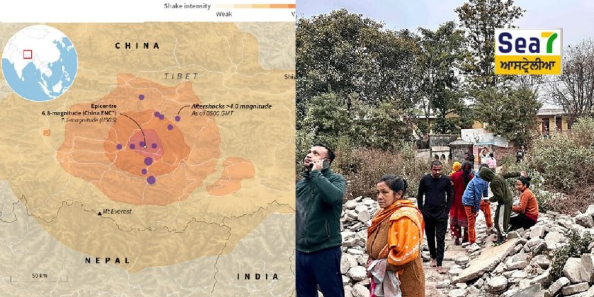 ਮੈਲਬਰਨ : ਚੀਨ ’ਚ ਸਥਿਤ ਤਿੱਬਤ ਦੇ Shigatse ਖੇਤਰ ਨੇੜੇ ਹਿਮਾਲਿਆ ’ਚ ਮੰਗਲਵਾਰ ਨੂੰ 6.8 ਤੀਬਰਤਾ ਦੇ ਭੂਚਾਲ ਦੇ ਝਟਕੇ ਮਹਿਸੂਸ ਕੀਤੇ ਗਏ, ਜਿਸ ’ਚ ਘੱਟੋ-ਘੱਟ 126 ਲੋਕਾਂ ਦੀ ਮੌਤ ਹੋ ਗਈ ਅਤੇ 62 ਹੋਰ ਜ਼ਖਮੀ ਹੋ ਗਏ। ਭੂਚਾਲ ਦਾ ਕੇਂਦਰ ਟਿੰਗਰੀ ਕਾਊਂਟੀ ’ਚ ਸੀ। ਇਸ ਦਾ ਅਸਰ ਗੁਆਂਢੀ ਨੇਪਾਲ, ਭੂਟਾਨ ਅਤੇ ਭਾਰਤ ’ਚ ਵੀ ਮਹਿਸੂਸ ਕੀਤਾ ਗਿਆ। ਭਾਰਤੀ ਅਤੇ ਯੂਰੇਸ਼ੀਅਨ ਟੈਕਟੋਨਿਕ ਪਲੇਟਾਂ ਦੇ ਟਕਰਾਅ ਕਾਰਨ ਇਸ ਖੇਤਰ ਵਿੱਚ ਭੂਚਾਲ ਆਉਣ ਦਾ ਖਤਰਾ ਰਹਿੰਦਾ ਹੈ। ਚੀਨ ਦੇ ਰਾਸ਼ਟਰਪਤੀ ਸ਼ੀ ਜਿਨਪਿੰਗ ਨੇ ਜਾਨੀ ਨੁਕਸਾਨ ਨੂੰ ਘੱਟ ਤੋਂ ਘੱਟ ਕਰਨ ਲਈ ਖੋਜ ਅਤੇ ਬਚਾਅ ਕਾਰਜਾਂ ਦੀ ਅਪੀਲ ਕੀਤੀ ਹੈ। ਭੂਚਾਲ ਦੇ ਕੇਂਦਰ ਤੋਂ 20 ਕਿਲੋਮੀਟਰ ਦੇ ਘੇਰੇ ’ਚ ਤਿੰਨ ਸ਼ਹਿਰ ਅਤੇ 37 ਪਿੰਡ ਹਨ, ਜਿਨ੍ਹਾਂ ’ਚ ਕੁੱਲ 6900 ਲੋਕ ਰਹਿੰਦੇ ਹਨ।