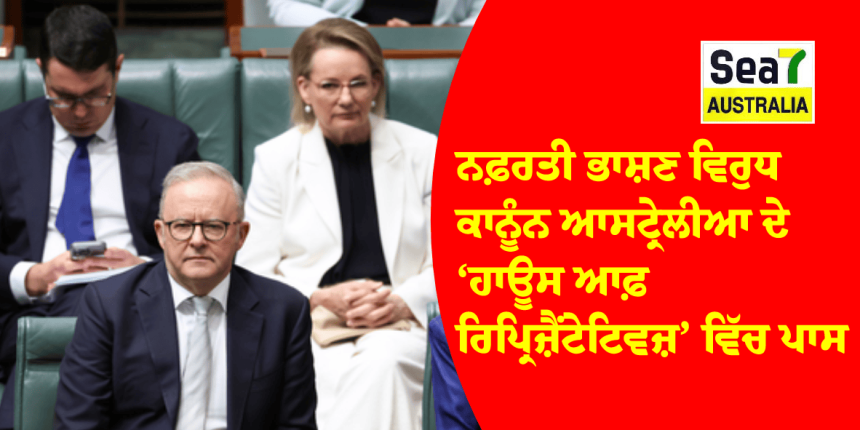 ਮੈਲਬਰਨ : Bondi Beach ਦੇ ਅੱਤਵਾਦੀ ਹਮਲੇ ਤੋਂ ਬਾਅਦ ਲਿਆਂਦੇ ਗਏ ਨਫ਼ਰਤੀ ਭਾਸ਼ਣ ਕਾਨੂੰਨ ਆਸਟ੍ਰੇਲੀਆ ਦੀ ਸੰਸਦ ਦੇ ਹਾਊਸ ਆਫ਼ ਰਿਪ੍ਰਿਜ਼ੈਂਟੇਟਿਵਜ਼ ਵਿੱਚ ਪਾਸ ਹੋ ਗਏ ਹਨ। ਬਿੱਲ ਦੇ ਹੱਕ ਵਿੱਚ 116 ਅਤੇ ਵਿਰੋਧ ਵਿੱਚ 7 ਵੋਟਾਂ ਪਈਆਂ। 27 ਮੈਂਬਰਾਂ ਨੇ ਵੋਟ ਨਹੀਂ ਪਾਈ।